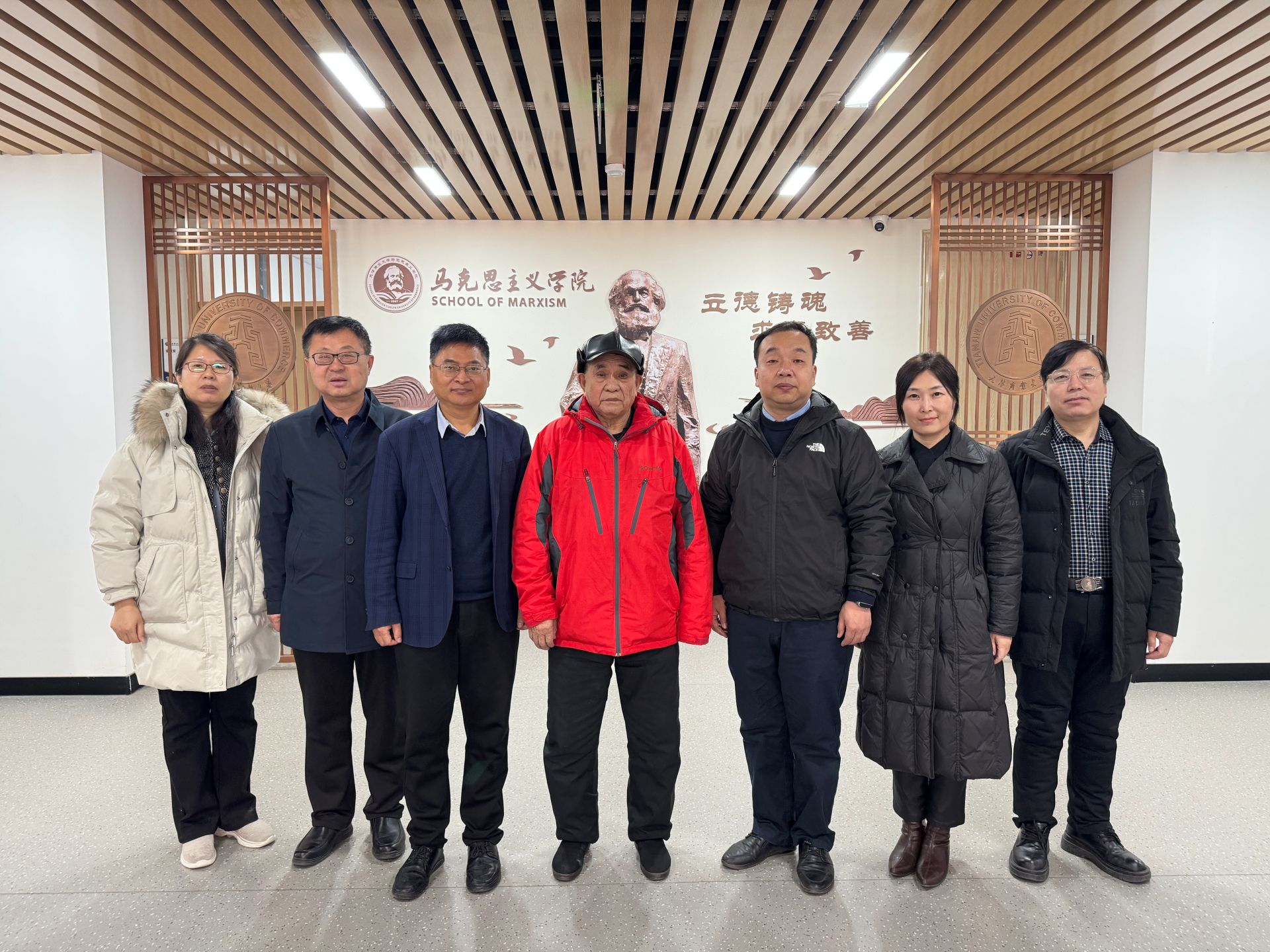 会见结束后,两位老同志参观了马克思主义学院教学科研楼,观看了反映当年工作的专题视频,听取了学院领导班子的工作汇报。在和学院领导班子的座谈中,两位老同志表达了对学校的深厚感情、对思政课建设的强烈责任感,畅谈了当年以领风气之先的锐气推动思政课建设改革创新的宝贵经验,并分享了加强学科建设、学术研究、队伍建设、党的建设的思路和理念;针对学院下一步的发展提出了意见和建议,并勉励学院领导班子乘势而上,攻坚克难,奋楫争先,开创新的工作局面。